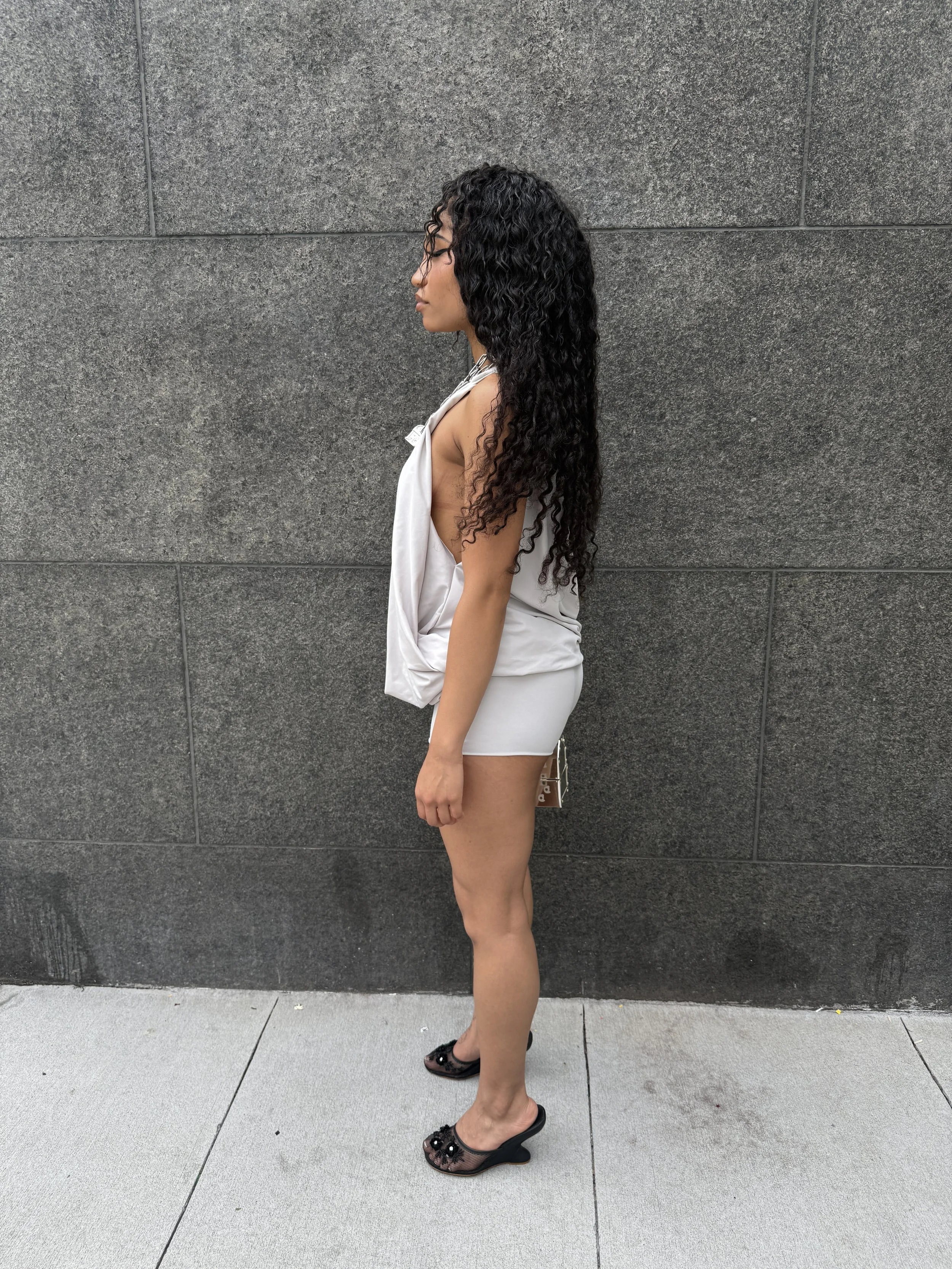 Comes with our deep plunge soft grey top and lounge shorts — perfect for a breezy summer day.